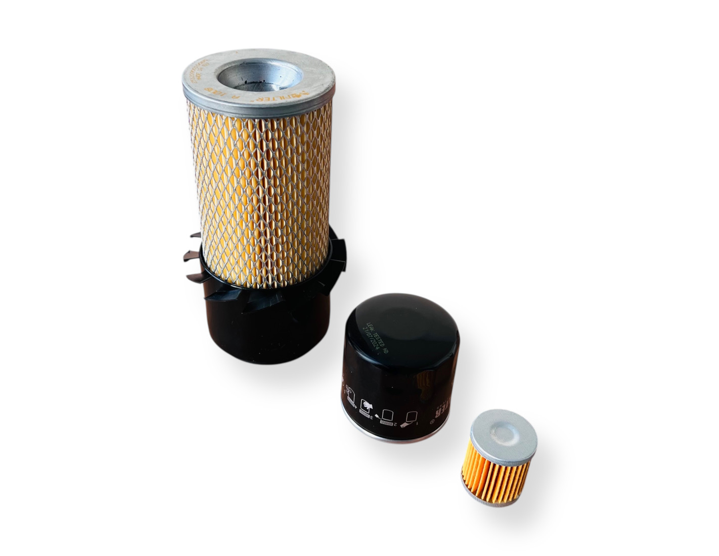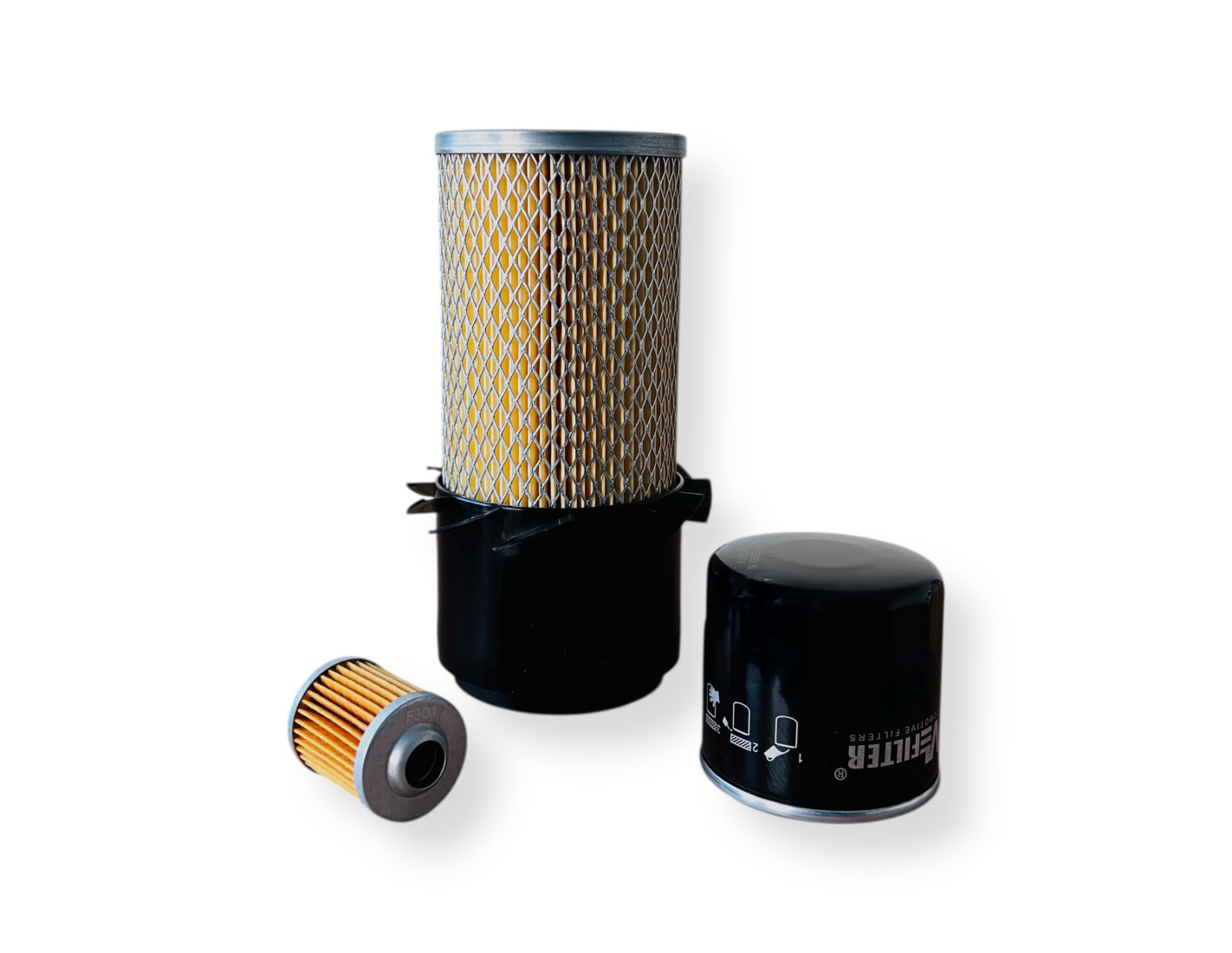 Комплект фильтров MITSUBISHI MT23, MT25 (1) - воздушный фильтр, масляный фильтр, топливный фильтр. Данный комплект фильтров предназначен для обслуживания двигателя трактора. Подходит для некоторых (воздушный фильтр может отличаться) тракторов Mitsubishi MT23 и Mitsubishi MT25.