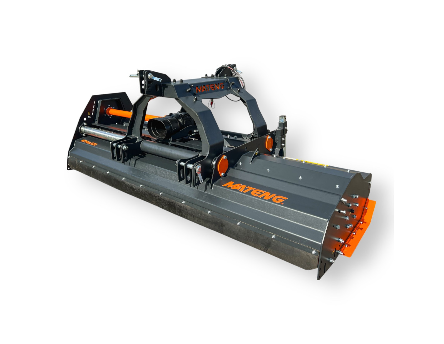 Косилка MATENG RFMax 300 - тяжелая, прочная молотковая мульчирующая косилка (мульчер) с гидравлическим боковым смещением, предназначенная для профессионального использования, срезания и мульчирования высокой и неубранной травы, мелкого кустарника и веток. Этот мульчер подходит для тракторов мощностью от 185 л.с. (лошадиных сил). С помощью гидроцилиндра можно менять положение косилки - сдвигать ее в сторону, в горизонтальном направлении (для подключения требуется два гидравлических соединения). Косилка MATENG RFMax 300 оснащена прочными и тяжелыми "Т"-образными молотками, продаетca в комплекте с карданным валом.